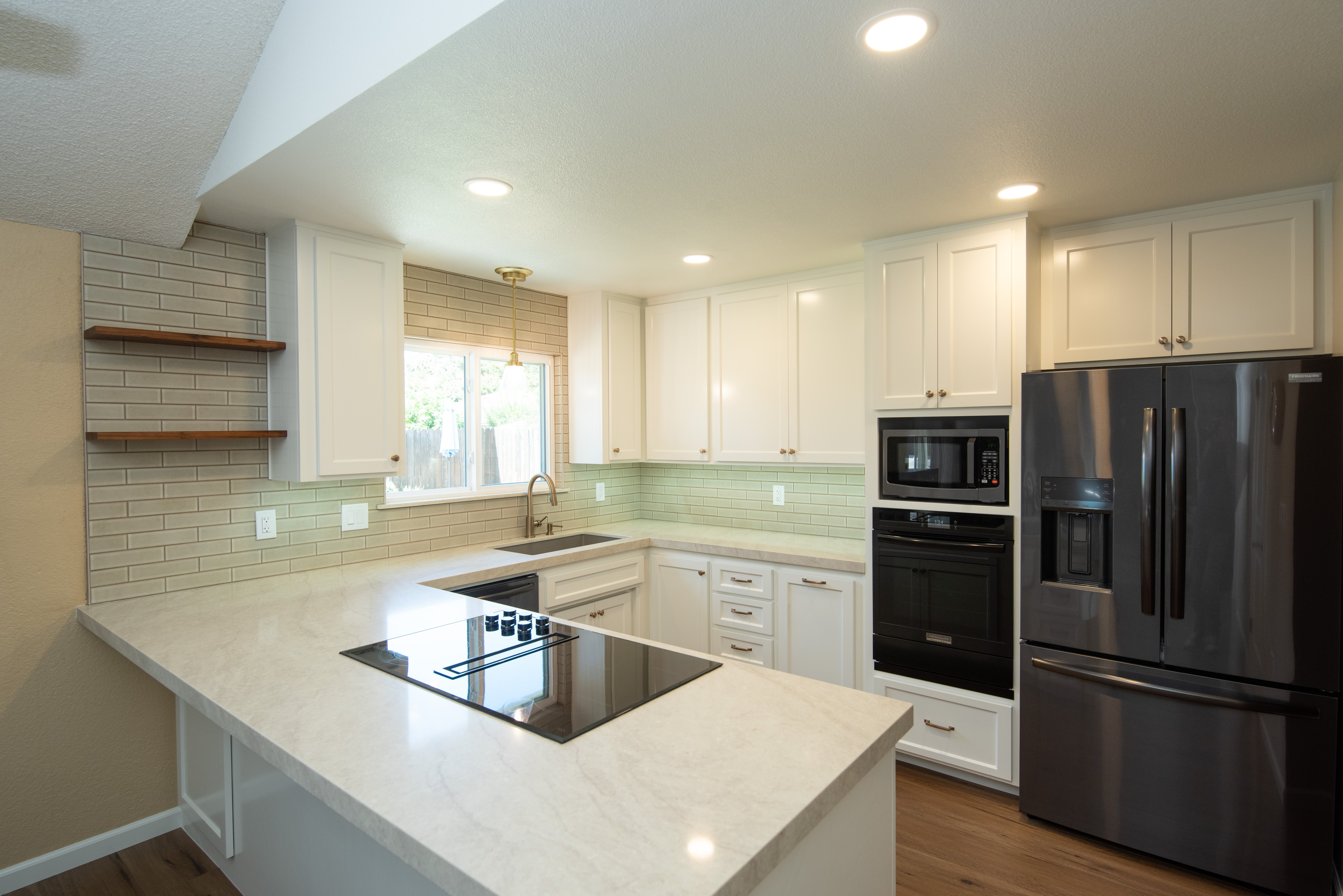- Removed upper cabinets above the peninsula and sink to open up sightlines