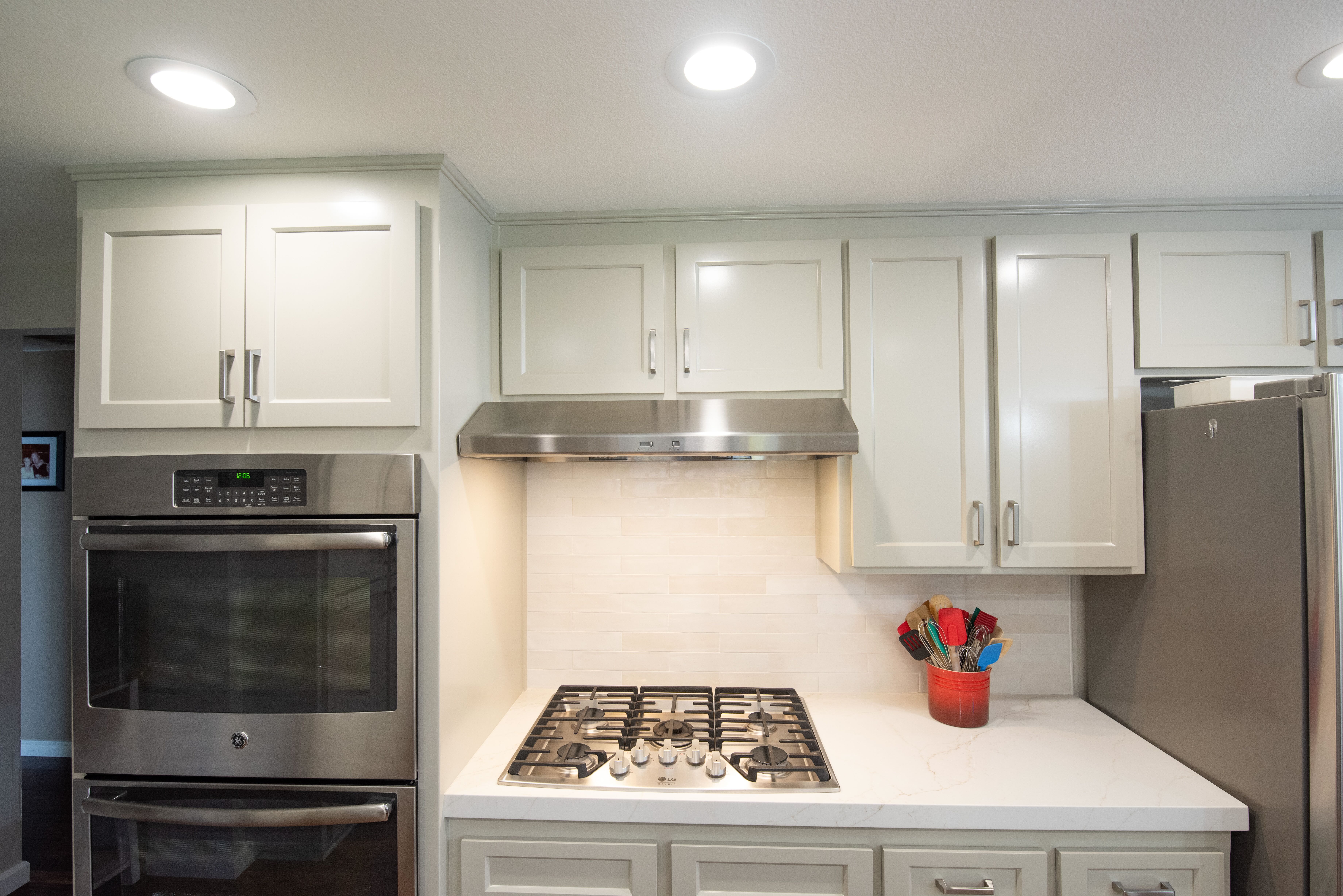 - A new recessed wafer LED light in Daylight Glow (4000K) at the sink