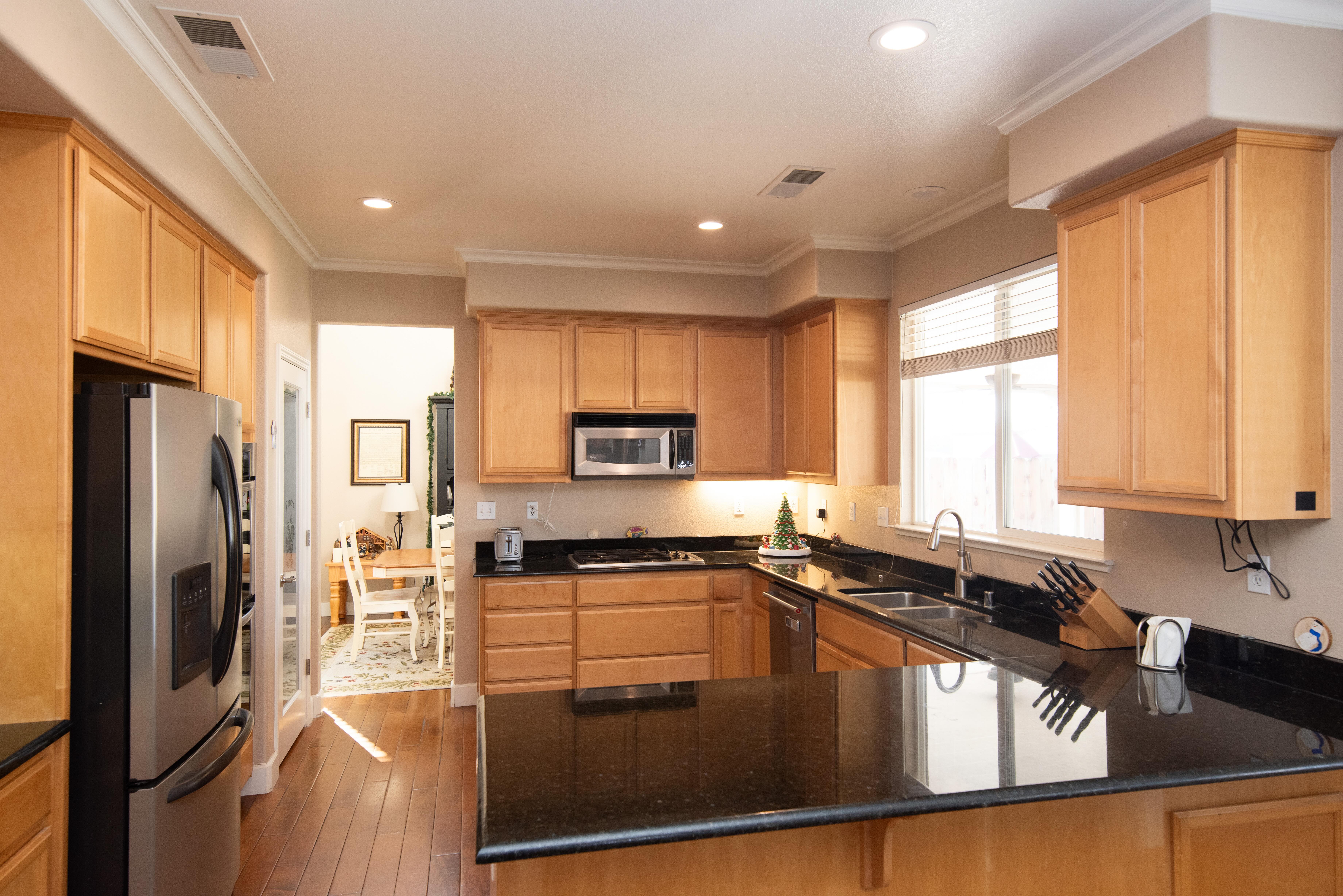 The cabinetry in this Turlock kitchen remodel exemplifies craftsmanship and design precision. The homeowners’ existing solid maple cabinets were upgraded with all-new door and drawer faces, along with custom modifications to improve functionality.
