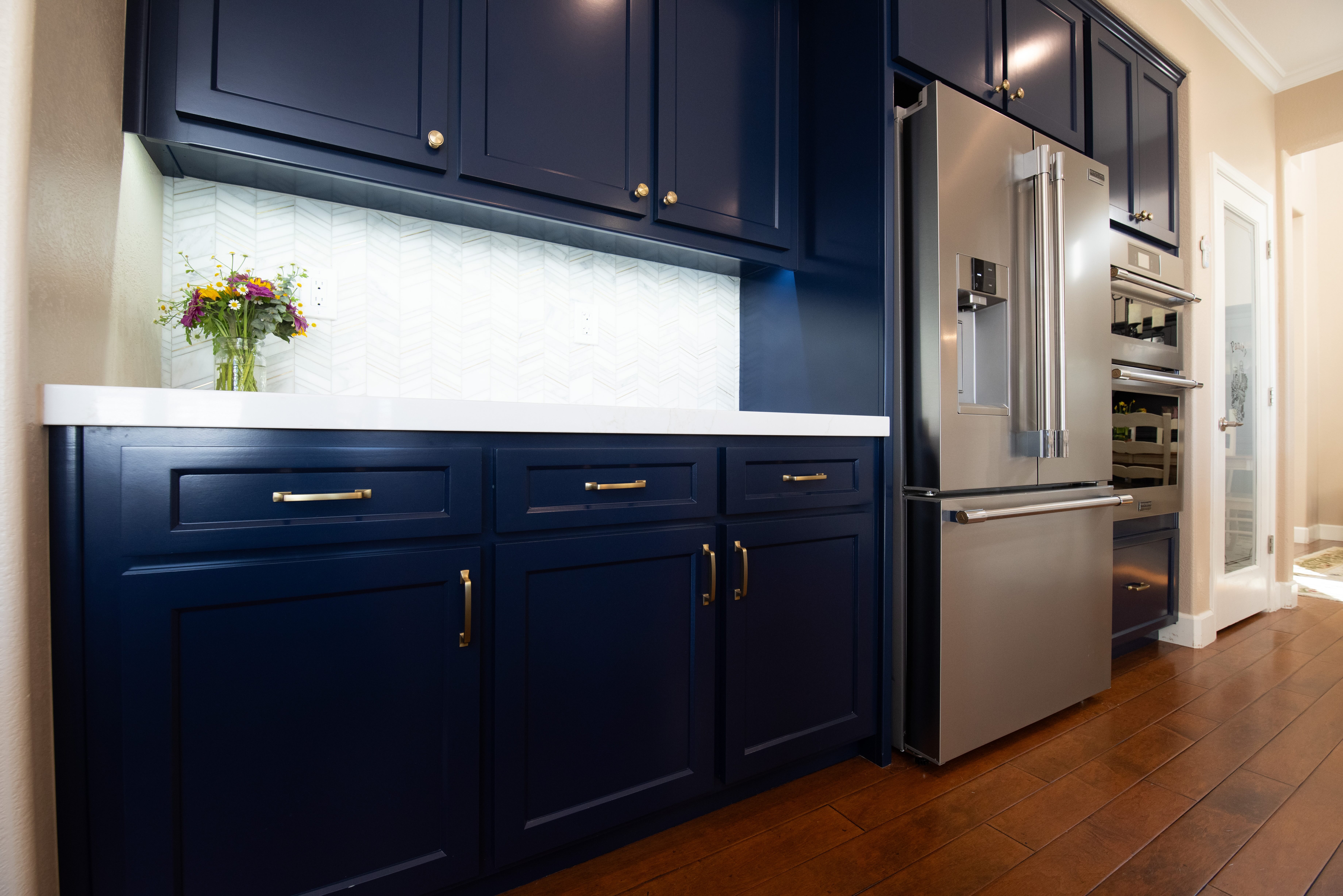 This crisp pairing of white and navy offers visual contrast while maintaining a timeless, coastal-inspired feel – perfect for a Central Valley home that embraces both elegance and comfort.