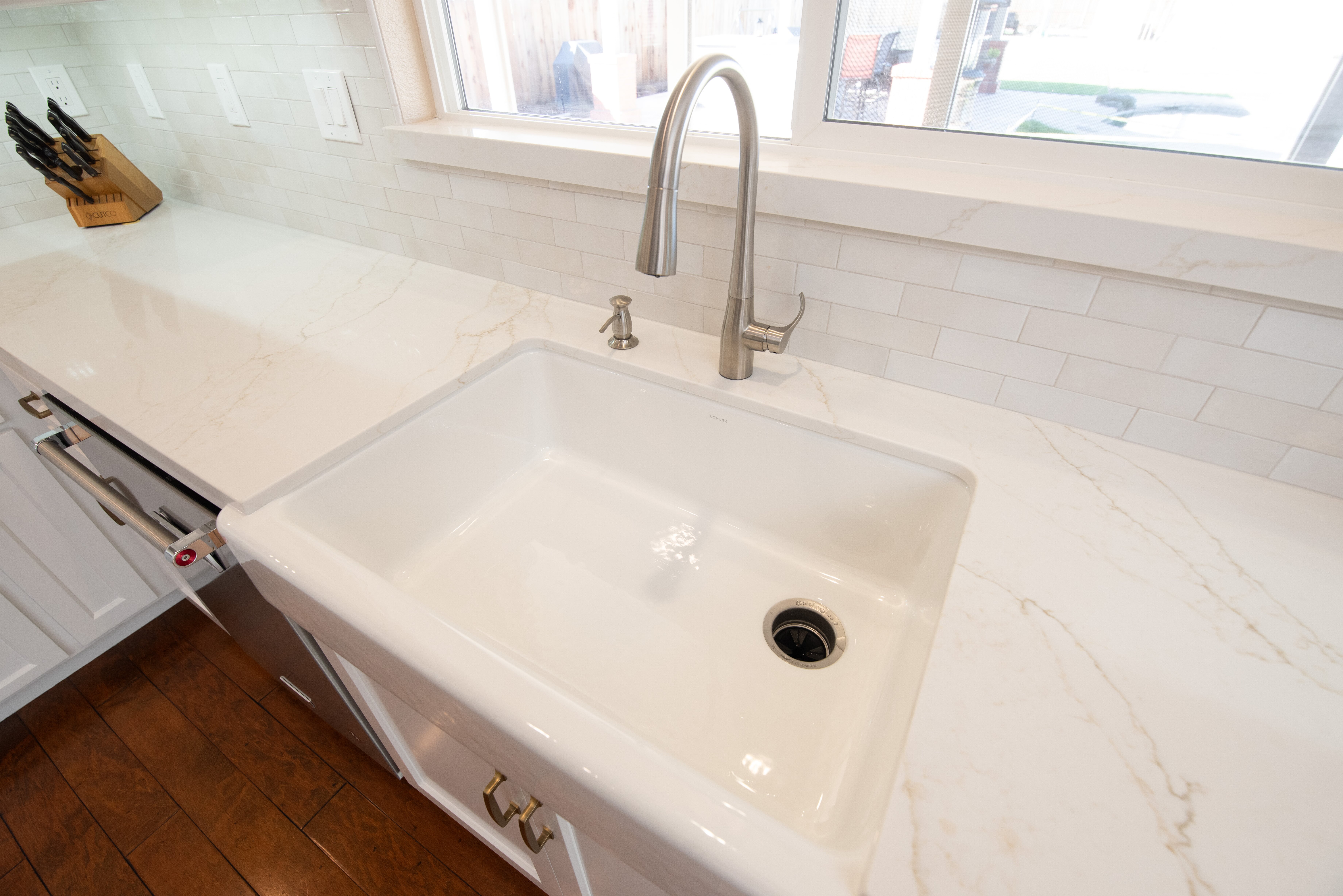 - Apron Sink Modification: Cabinet structure adjusted for proper fit and alignment of the Kohler Whitehaven.