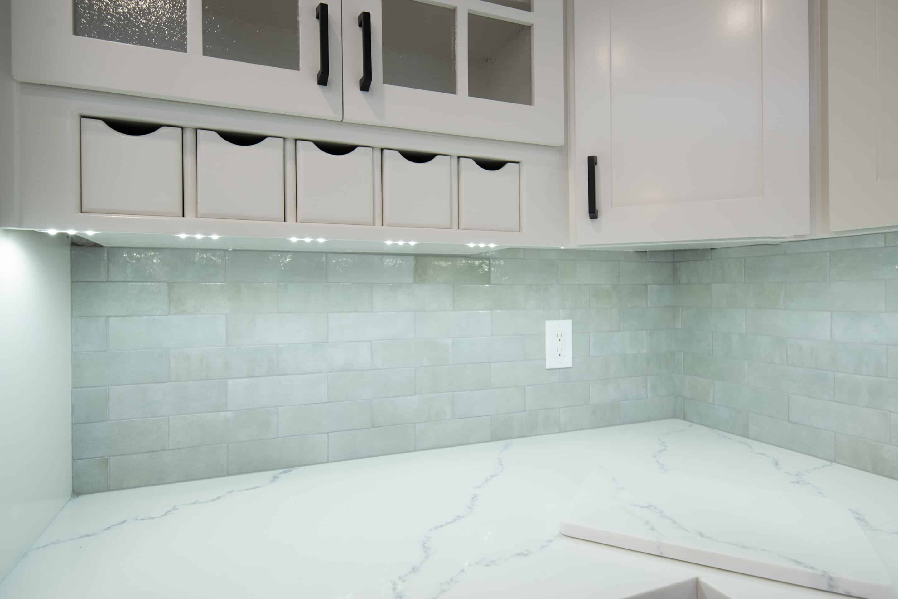The selection of Bedrosians- Sierra Carrara Quartz countertops showcases a commitment to durability and elegance. Quartz is a great material for a kitchen because of its resistance to heat, stains, and scratches. The polished finish and 2″ mitered ease edge profile provide the workstation a sleek, modern vibe that improves the kitchen’s appearance while offering a useful surface for cooking.